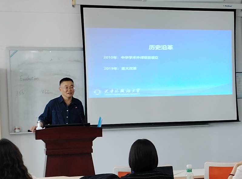 汪淳波教授首先对中华学术外译项目进行了全面的介绍,从项目的历史沿革到我校的申报情况,再到他个人在中华学术外译领域的丰富经历和心得体会,汪教授毫无保留地与参会教师们分享了这一领域的宝贵经验。他的演讲不仅为大家提供了申报和执行项目的实用指南,更坚定了教师们申报中华学术外译项目的信心。