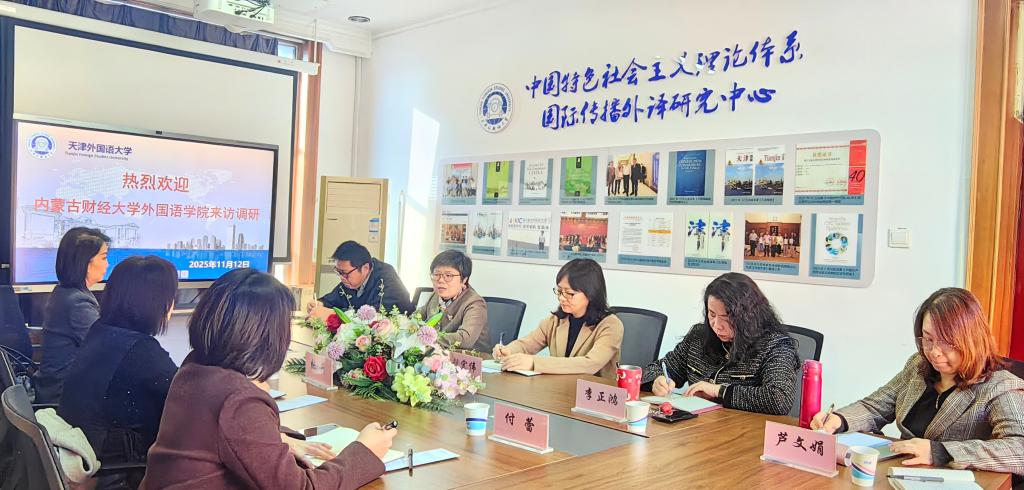 11月12日,内蒙古财经大学外国语学院院长张莉一行到访英语学院,围绕创新人才培养模式、培养方案设计、实践教学体系、质量保障措施等主题开展座谈交流。英语学院院长刘宏伟、副院长李正鸿、高级翻译学院副院长周薇和英语学院翻译系和国际商务系相关负责人共同接待。