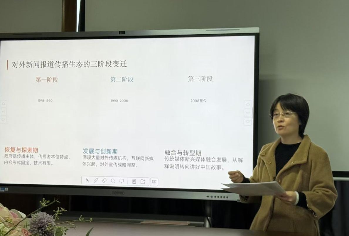 李娜则以《对外新闻报道的传播生态及变迁》为题,系统梳理了我国对外传播体系从1978年至今的三阶段演进逻辑。她指出,从改革开放初期的“恢复与探索期”到2008年之后的“融合与转型期”,对外新闻报道经历了从政府单一主体到多元主体共融、从“宣传中国”的单向传递到“讲好中国故事”的情感共鸣的范式革命。李娜重点阐释了人类命运共同体理念对国际传播的学理价值,认为其不仅增强了议题构建与舆论引导能力,更体现了对发展中国家受众的精准细分与人文主义关怀。她提出,在“政治秩序重构传媒秩序”的全球格局下,需要推动建设性新闻理念成为新范式,在知识生产、舆论引导、文化建构三个层面协同发力,形成与我国综合国力相匹配的国际话语权。
