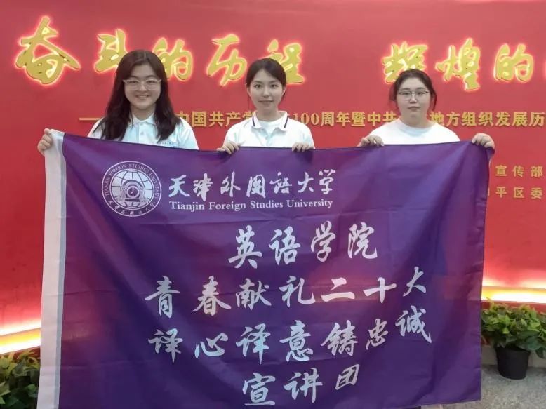 为深入学习贯彻习近平新时代中国特色社会主义思想和党的十九届历次全会精神,充分发挥英语专业优势,讲好中国故事,向世界宣介中国特色和红色精神,2022年8月,英语学院“青春献礼二十大,译心译意铸忠诚”宣讲团走进中共天津历史纪念馆,通过拍摄英文宣讲视频的方式叙述百年来天津地区革命事业的发展历程及其取得的辉煌成就。