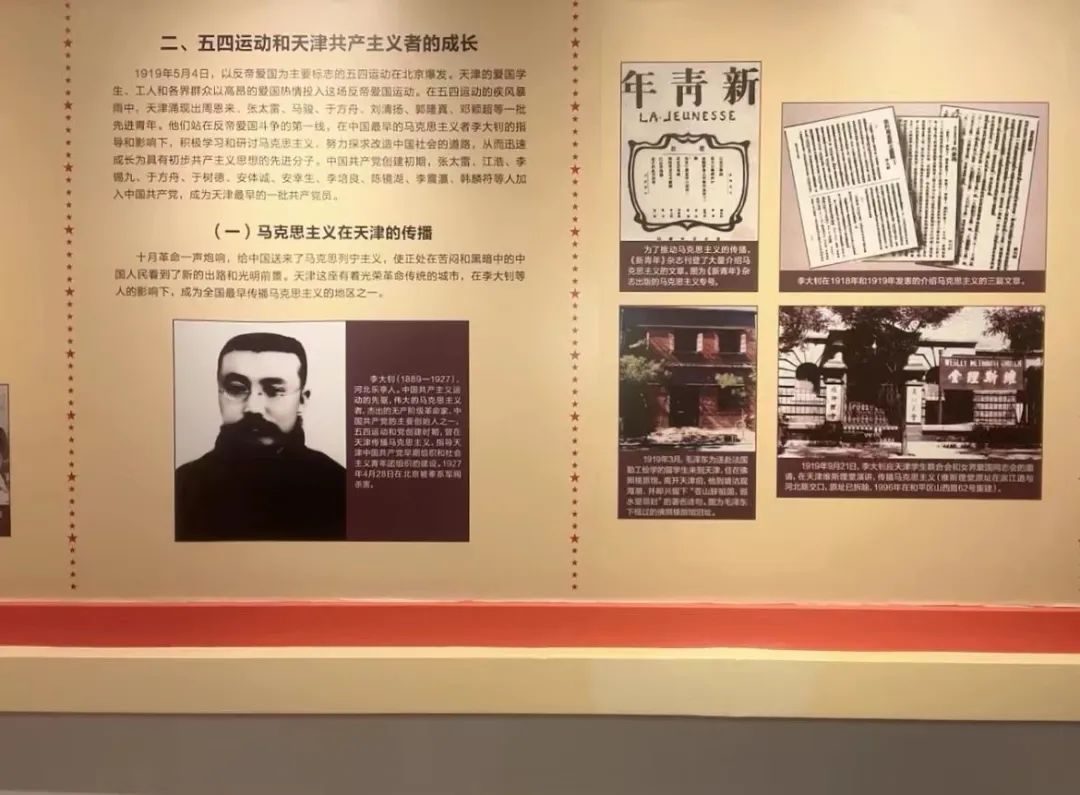 该馆是中国共产党在天津建立的第一个领导机关。馆内包括不同时期共产党人的革命史、斗争史和建设史,有450多幅珍贵的历史照片、图表和真实的影像资料。陈列品内容丰富,层次分明,客观生动地展示了五四运动以来,中国共产党领导天津人民进行革命、建设和改革的奋斗历程。一张张历史照片、一件件珍贵实物生动记录了国家从苦难中崛起并走向繁荣复兴的艰辛与伟大。